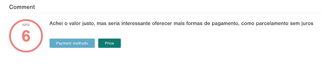 Once activated, Feedback AI will automatically analyze incoming NPS comments and apply Topic labels along with sentiment detection: