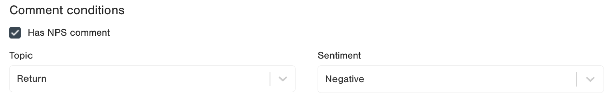 5. Add your desired Topic and Sentiment in the Comment Conditions area