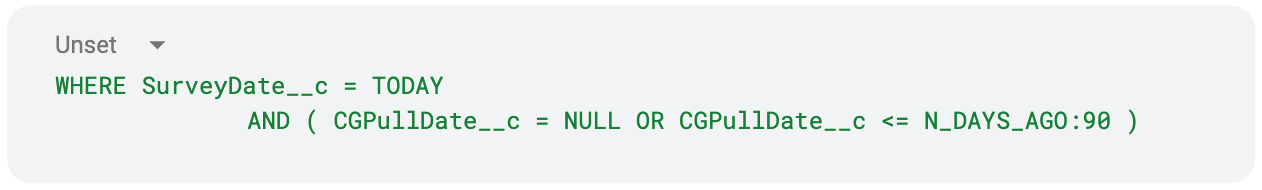 AND ( CGPullDate__c = NULL OR CGPullDate__c <= N_DAYS_AGO:90 )